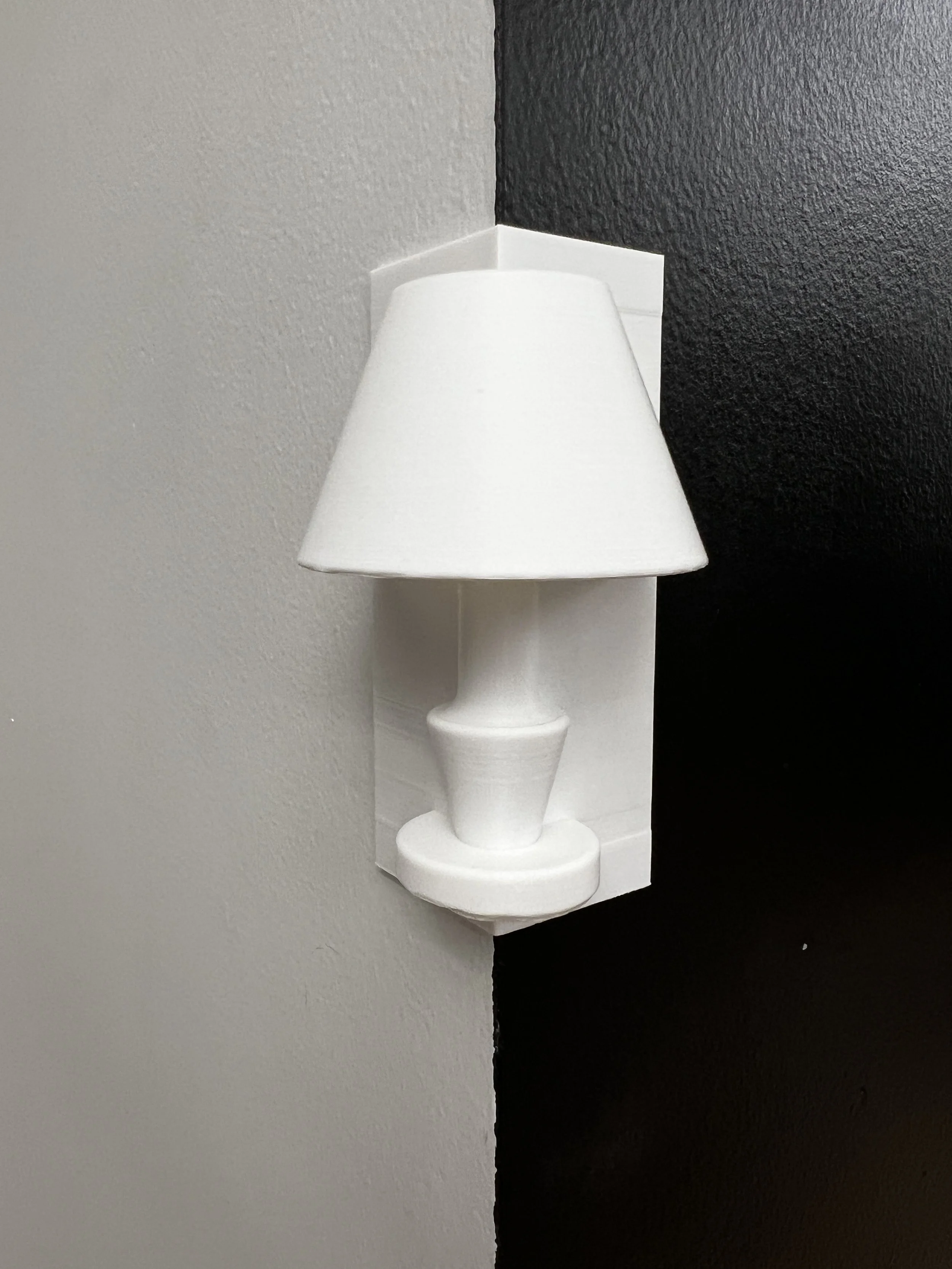 Updates: print out a 1:1 scale test wall light version - 9 inches (ran out of filament in the middle of the print), and plan to print a 1:1 scale table lamp - 18-inch version.