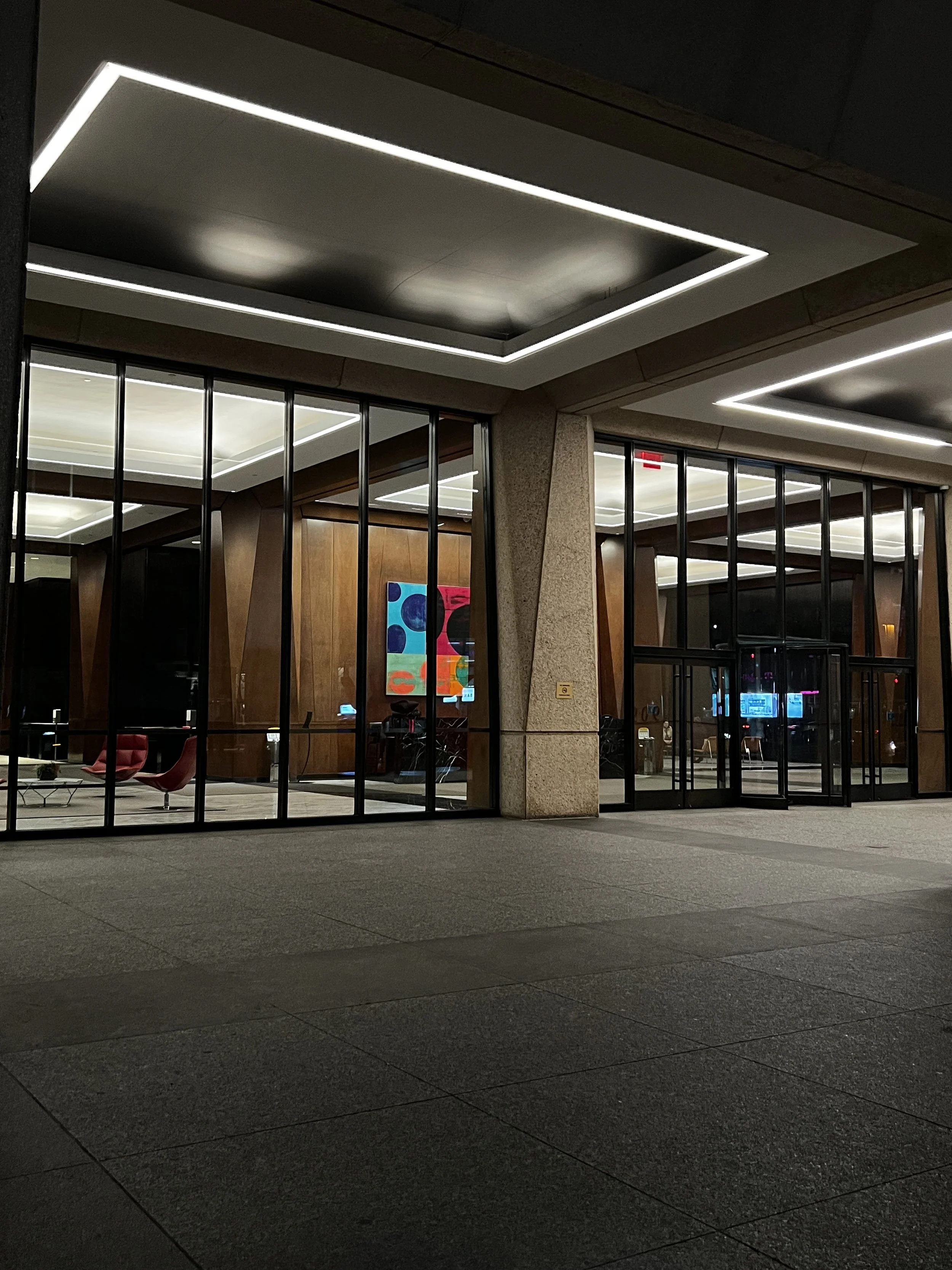Interior, lobby, hallway, or transitional space - 909 3rd Ave at late night - looking from outside to the inside lobby